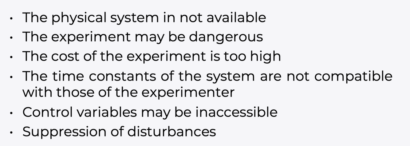 Why do we use simulation instead of experiments? (Name six reasons)