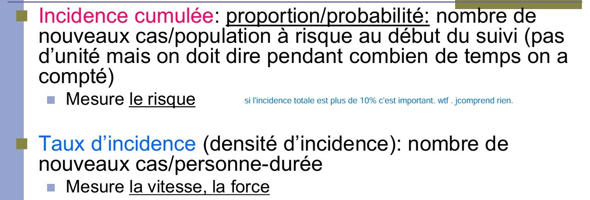 Incidence cumulée vs taux d’incidence