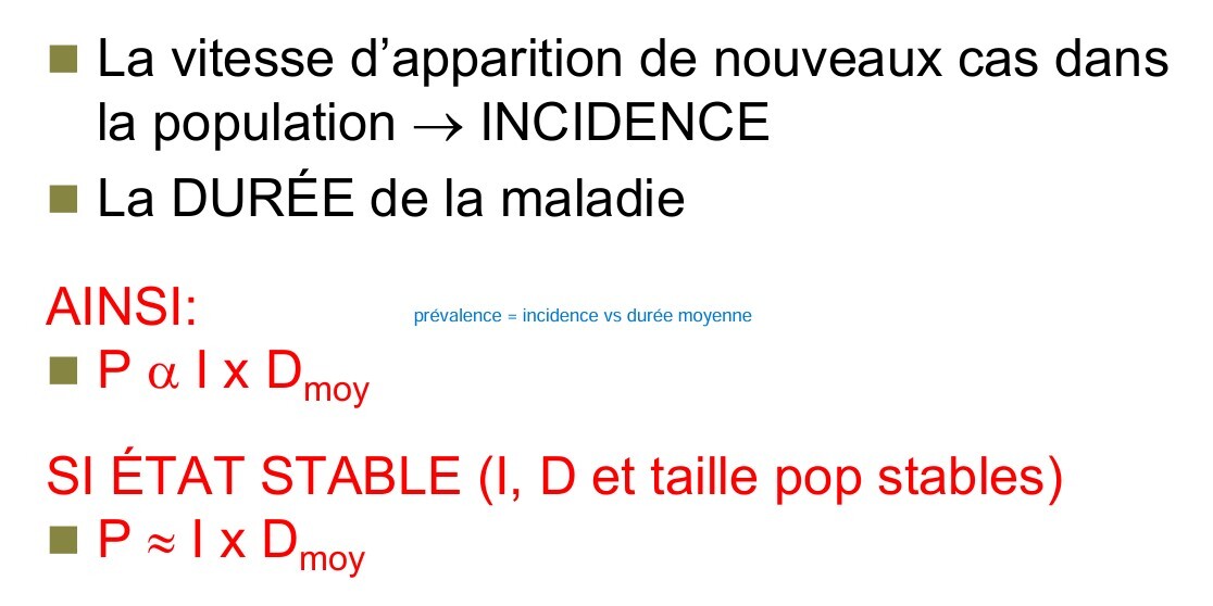 Nb de cas malades à un moment donné / nombre de sujets dans la population