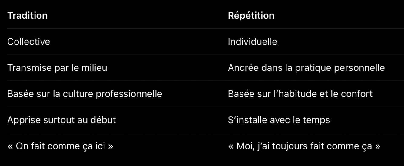 C’est quoi la différence entre tradition été répétitions ?