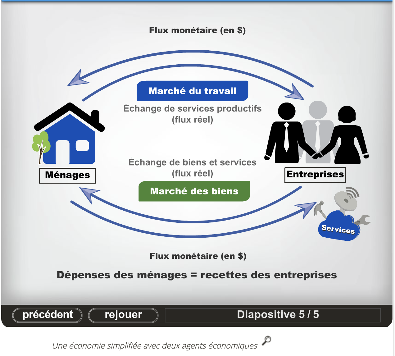 Donc que dépenses des ménages sont des revenus pour les entreprises et vice-versa