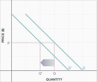 The diagram depicts a shift in the demand curve that reduces the quantity demanded at any given price. Only option A (lower incomes) results in a shift of the demand curve.