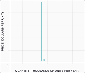 The graph shows a perfectly inelastic demand curve where changes in price have no effect on the quantity demanded. We have no information on price, but whatever price is charged could not be “too high” from the profit-maximizing viewpoint.