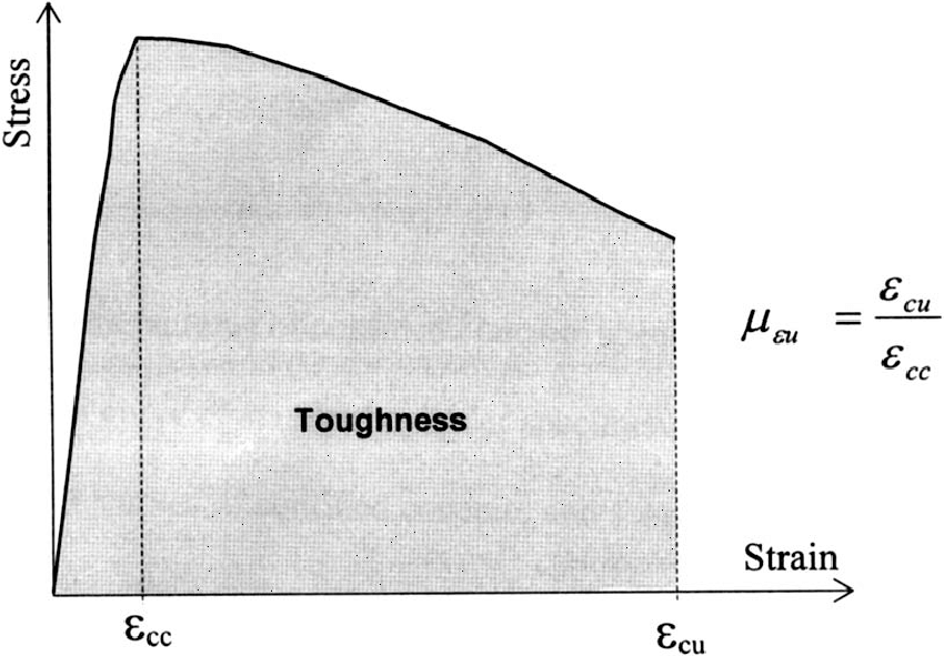 Toughness is the ability of a material to resist propagation of cracks. It is often identified as the area under a stress-strain graph.