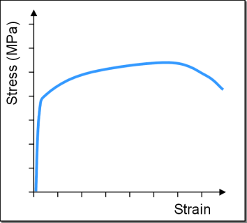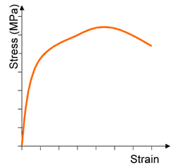 3. Plastic region- material deforms plastically (does not return to original shape).