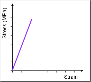 Young’s modulus (E) is given by the gradient of the curve in the elastic region. It is a measure of the stiffness of the material. For this curve the gradient is 40MPa/0.002=20GPa