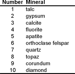 The hardness of a material can be determined based on Moh’s scale of hardness, which ranks a material based on a list of syandard materilas with known hardness. The hardness of the material is ranked on the scale between the material it just scratches and the material that it fails to scratch.