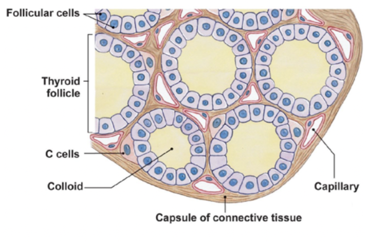explain the cellular structure of the thyroid gland