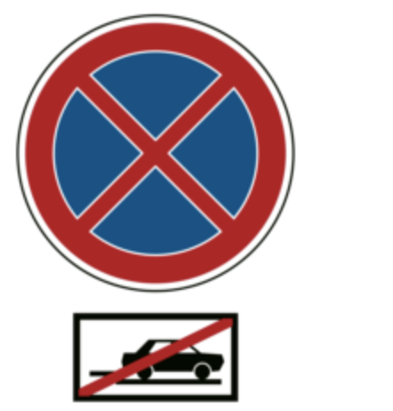 × Stopping and waiting is prohibited also on the verge outside the carriageway.