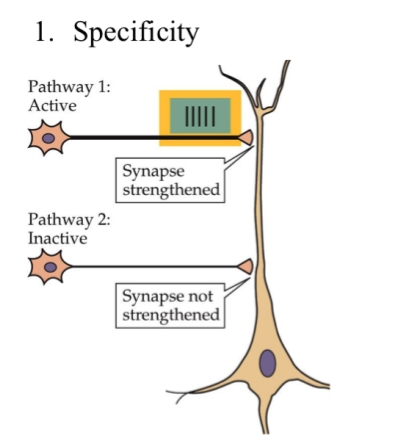 Specificity = LTP in one synapse does not occur in other, inactive synapses that contact the same postsynaptic neuron