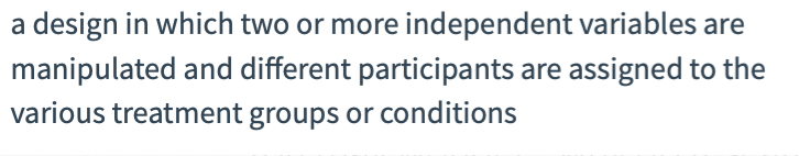 Every possible order of your condition is administrated but each participant experience only one order. For ex: Participant 1 would get AB and participant 2 gets BA