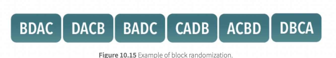 Each participant would experience each level of the independent variable (A,B,C,D) six times.