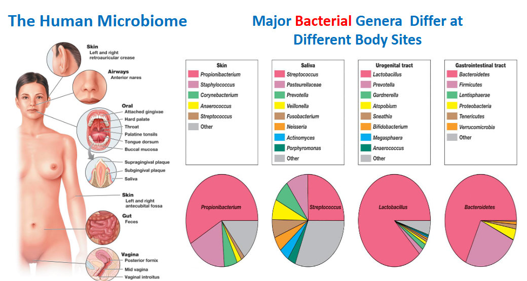 What are the major bacterial genera at different body sites