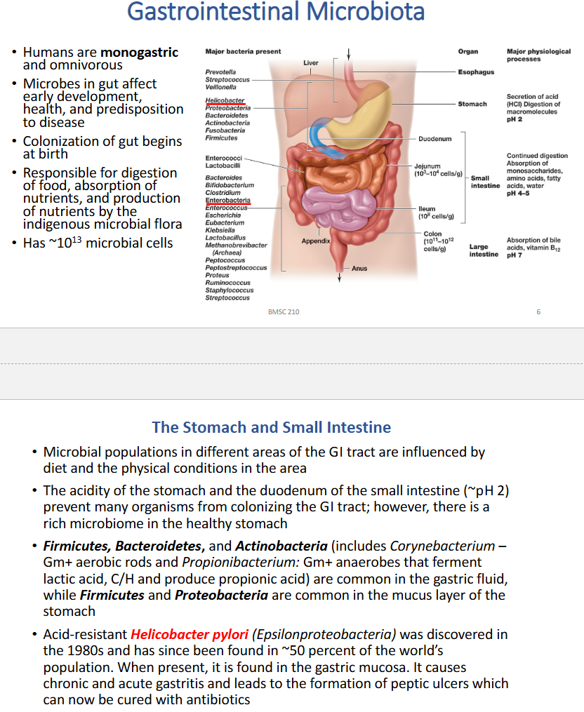 Describe the microbiota of the stomach and small intestine