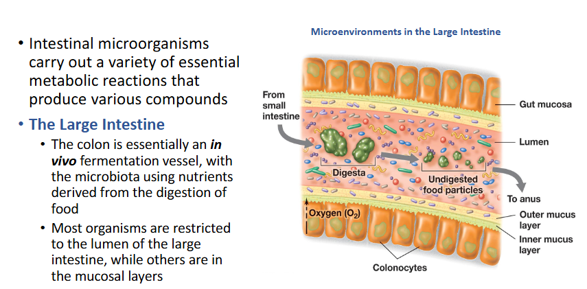 Describe the microbiota of the large intestine