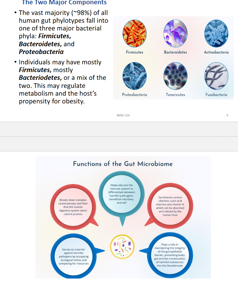 Describe the major components and functions of the gut microbiome