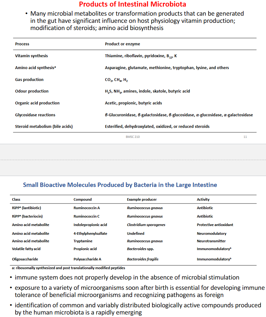 What are the products of intestinal microbiota and their importance