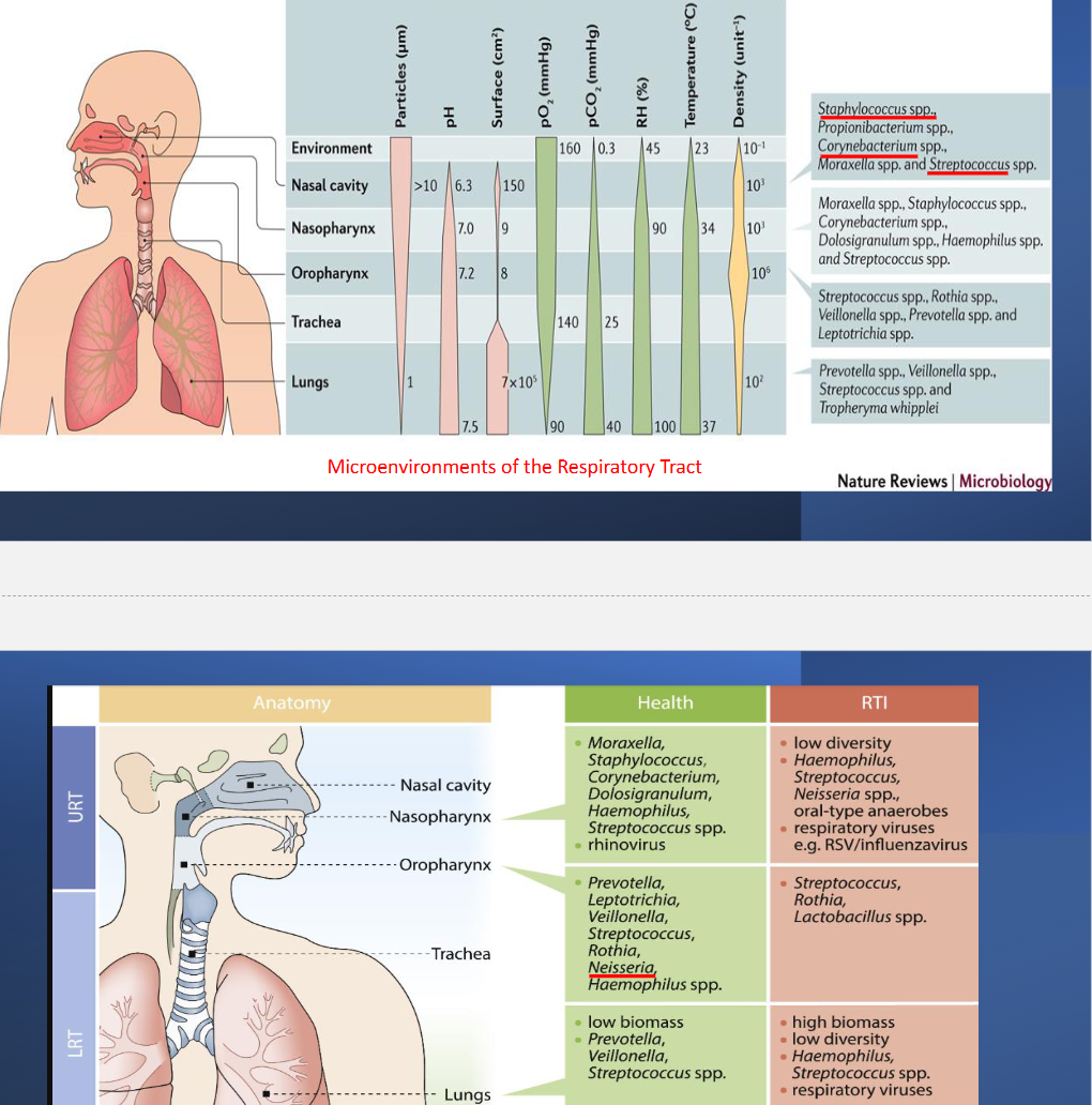 What are the microenvironments of the respiratory tract and their associated microbes
