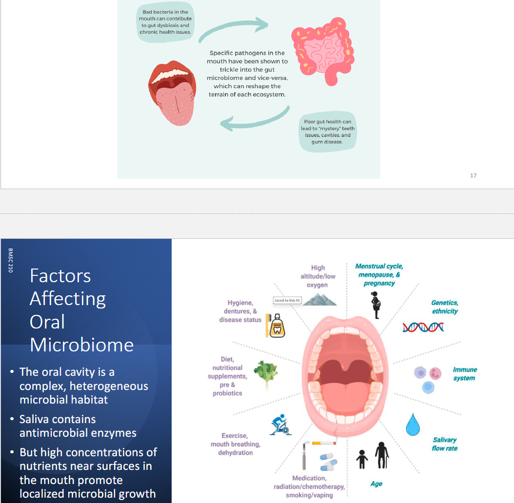 What are the factors affecting oral microbiome? How does this affect gut health?