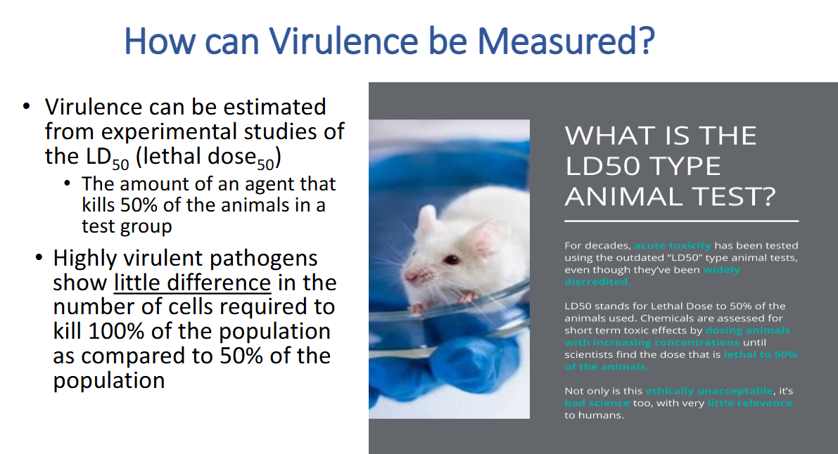 How can virulence be measured? (LD50)