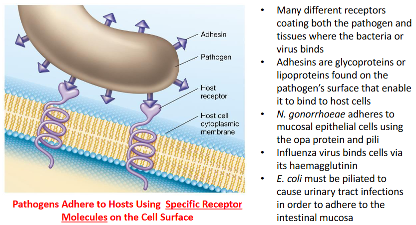 How do pathogens adhere to hosts using specific receptor molecules