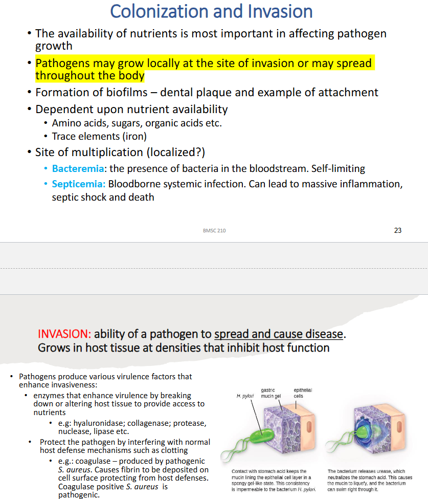 Explain invasion and the virulence factors that enhance colonization