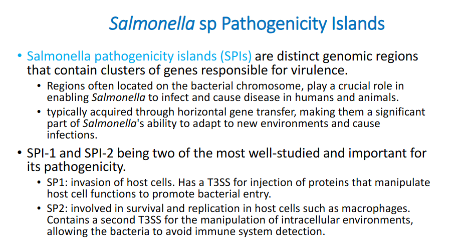 What are the virulence factors in salmonella (salmonella pathogenicity islands)