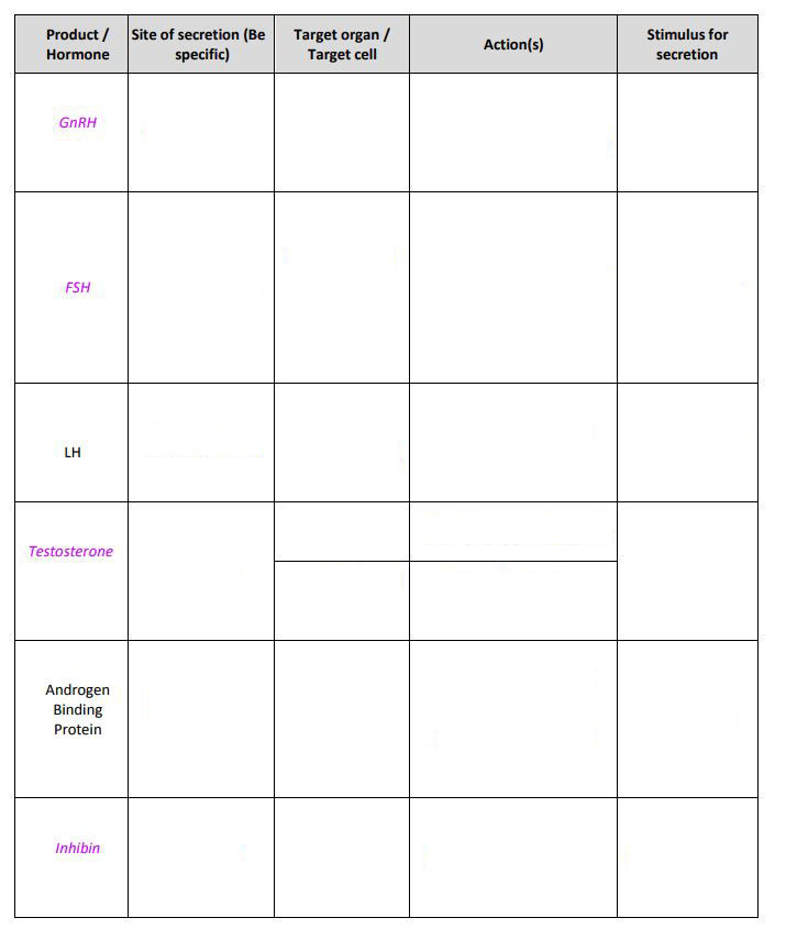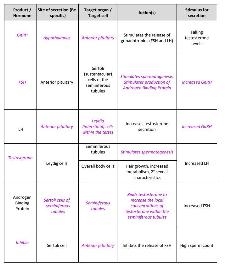 Interstitial cells (leydig)- testosterone