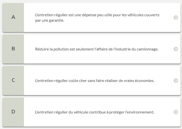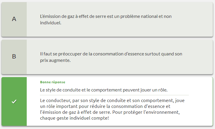 Parmi les options suivantes, choisissez celle ou celles qui sont associées à l’écoconduite.