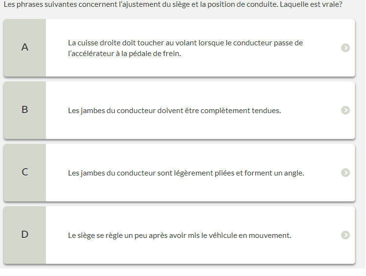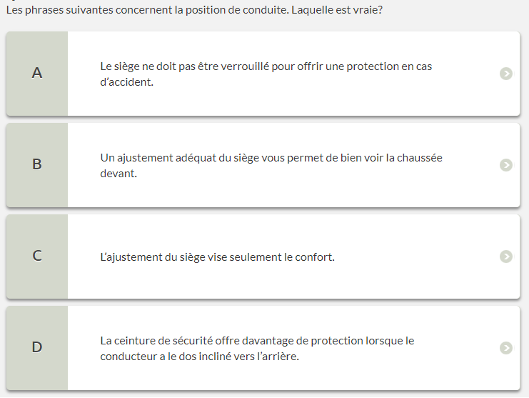 Parmi les situations suivantes, choisissez ce qui est dangereux pour le conducteur du véhicule en cas de collision ou d’arrêt brusque.