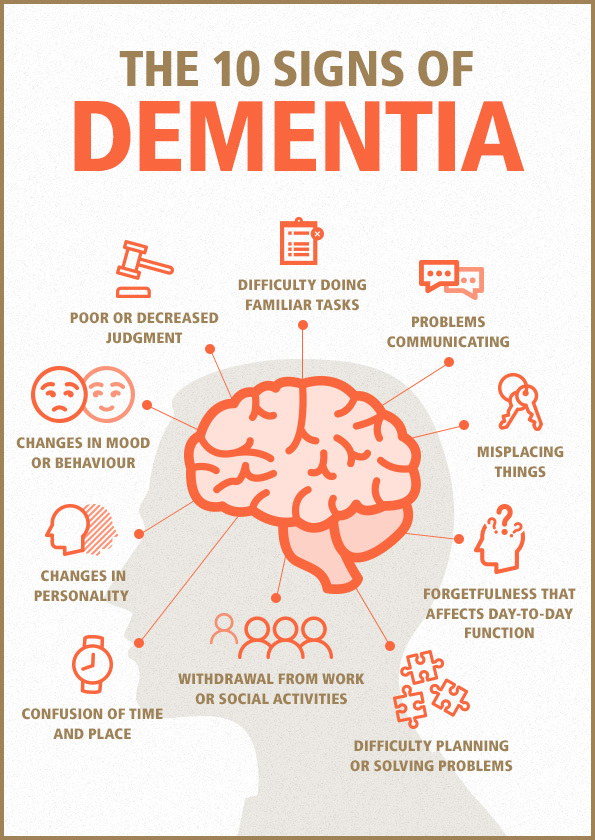 What are the signs and symptoms of dementia?