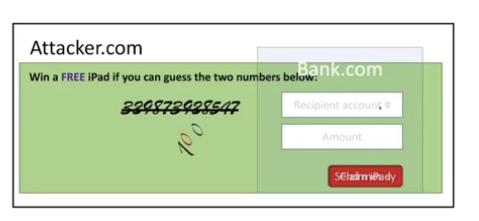 attack buts another web element underneath, tricking the user doing things they don’t want to do