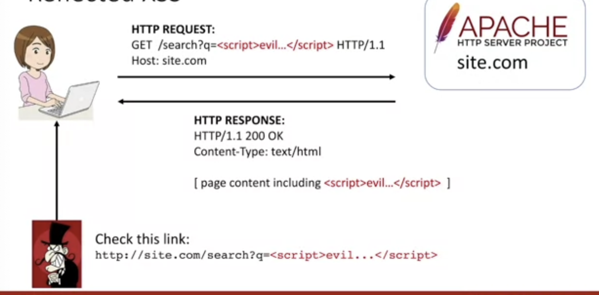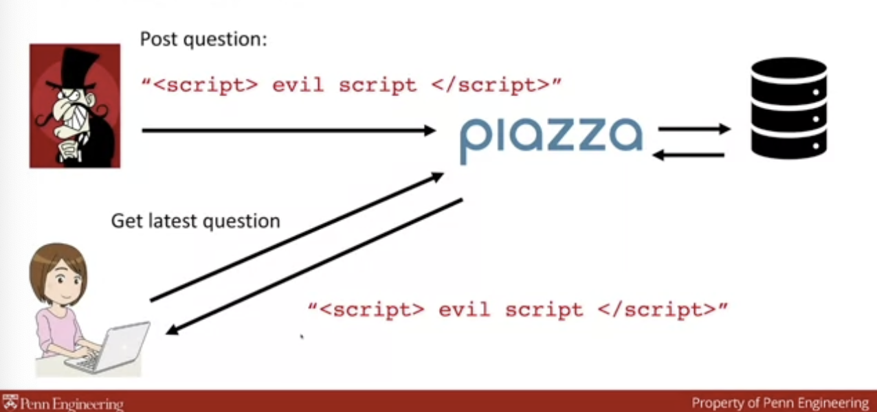 - when the victim’s browser downloads the content, it will misinterpret data as JS that is part of the website and run it
