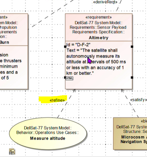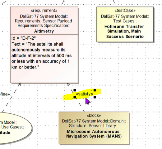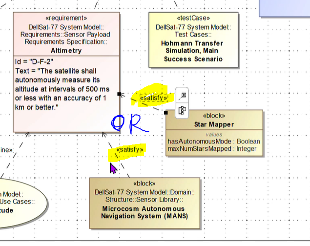 what design decision is conveyed when there are more than one model element with satisfy relationships to a requirement ?