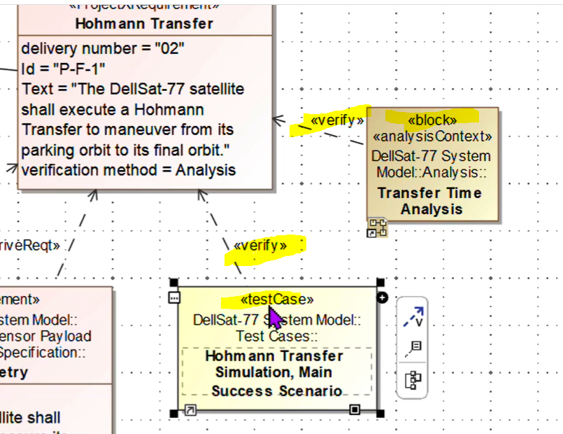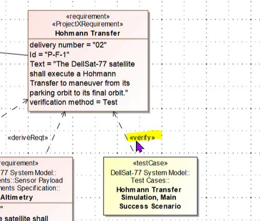 a verify relationship conveys that the client element at the tail end is the verification of the supplier on the ____ end will be satisfied by the system being designed
