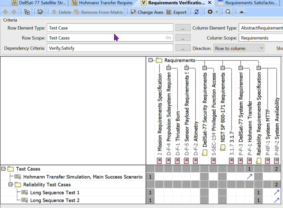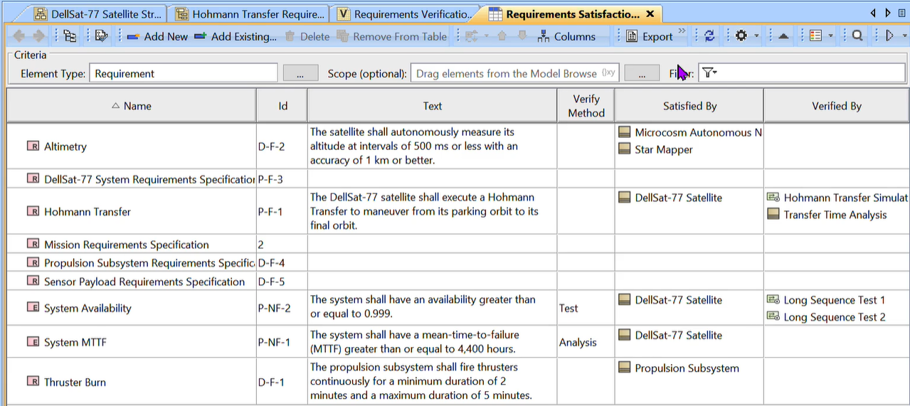 it displays requirement elements and other elements ( packages , use cases , test cases) that the requirements are related to within the model
