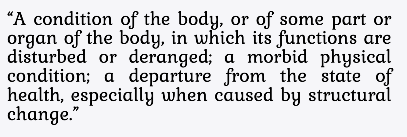 What is the definition of a disease?