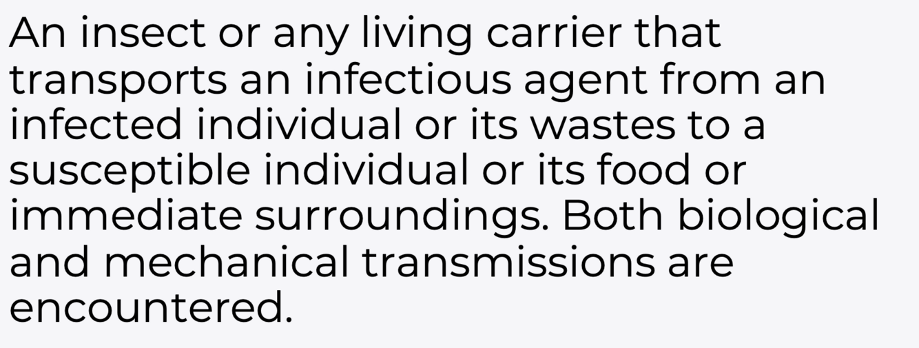 What is the definition of a vector of an infection?