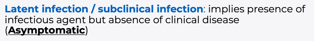 What does the Latent infection/subclinical infection mean?