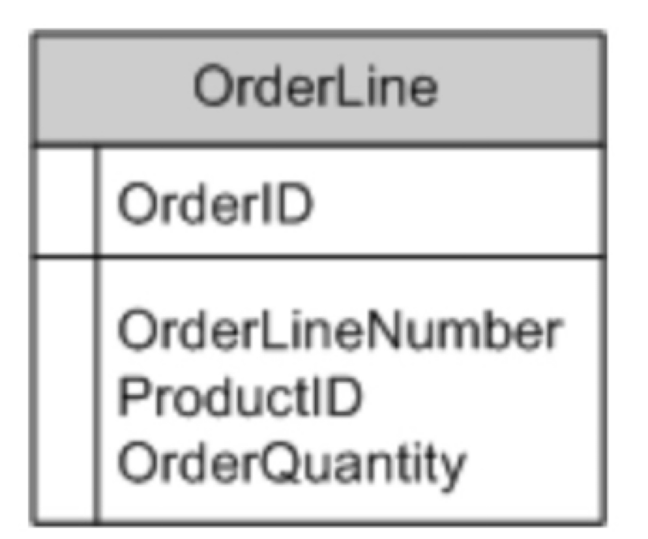 The following table, OrderLine, represents a single line item on a grocery store receipt. OrderID is the identifier for the entire order. OrderLineNumber is the number of an entry on your receipt, such as 1 for the first line on the receipt, and 2 for the second line on the receipt. Select all statements that are true about this table.