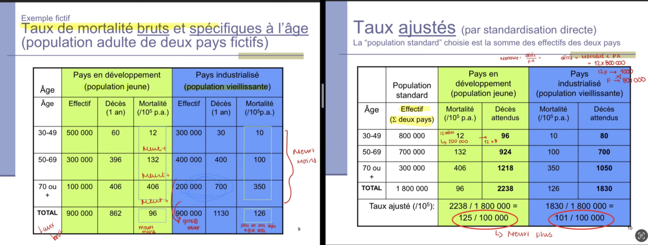 Mesure sommaire, comme le taux brut, mais permettant une comparaison valide entre 2 populations. Les taux obtenus sont fictifs