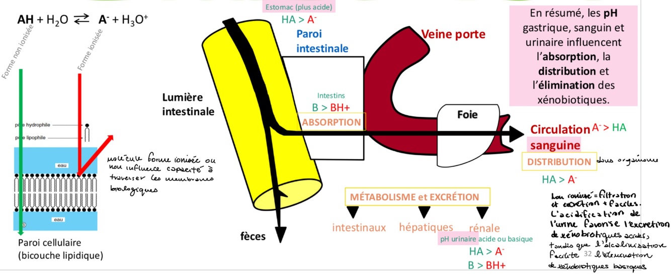 Les pH sanguin, gastriques, urinaires influencent l’absorption, la distribution et l’élimination