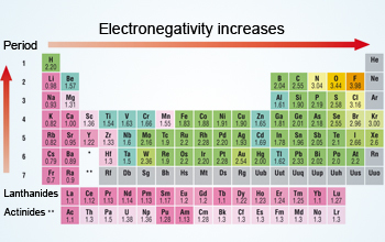 (Elements to right of periodic table need fewer electrons to fill outer shell, so attract electrons more strongly)