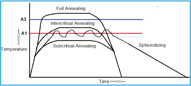The purpose of annealing may be to remove stresses, soften, obtain a desired shape or improve machanibility. It involves heating steel to and hold at a suitable temperature.