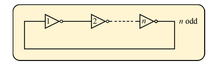 Oscillation occurs because there’s a propagation delay (tP) between when the input changes from low to high, and the output from high to low