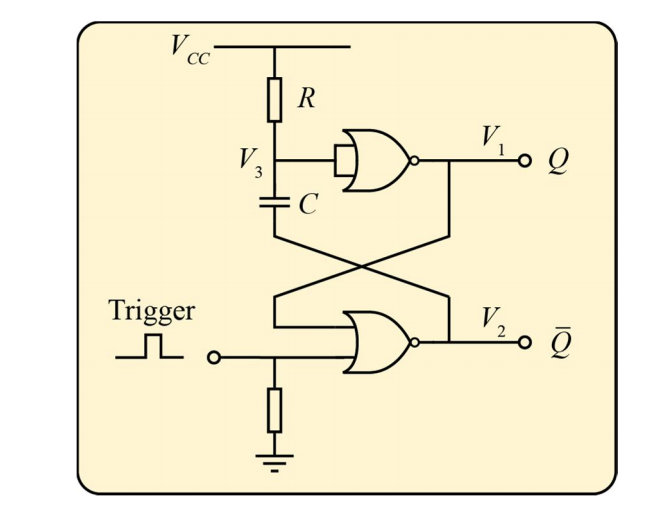 Draw the ouput waveform ‘Q’ for the following circuit (assume V3 = initially high)