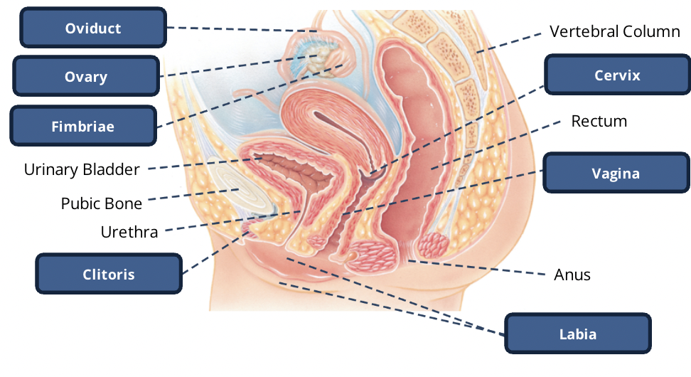 the reception of sperm occurs in the vagina, which is a muscular tube that connects the uterus, via the cervical canal, to the external environment