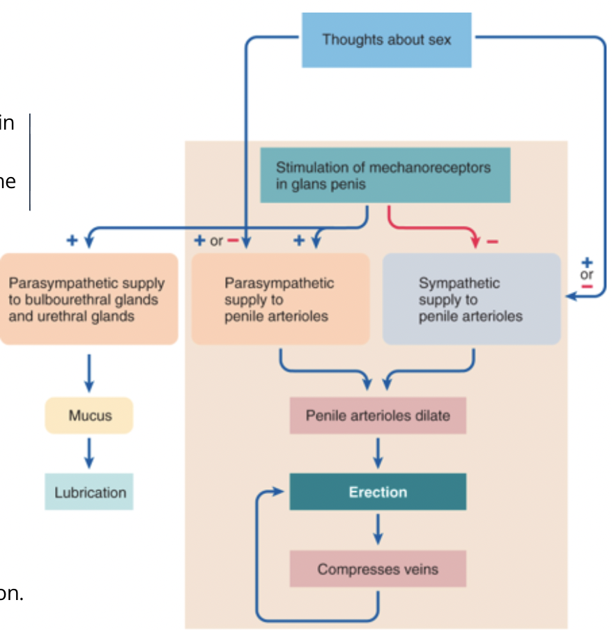 what are the 3 main actions for the activation of the erection reflex