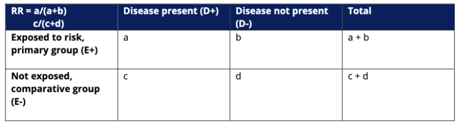 Relative Risk = a/(a+b) / c/(c+d)
