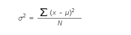 the average of the squared deviations from the mean. If the values for the entire population are known, the population variance is calculated using N to represent the total number of values in the population.
